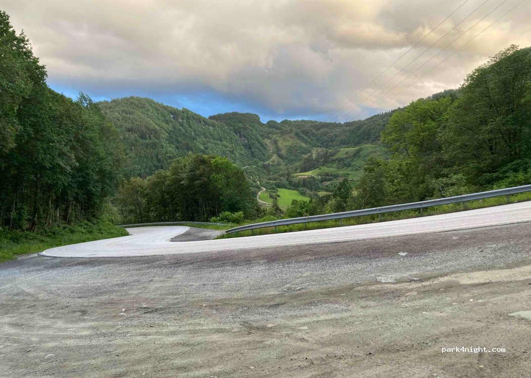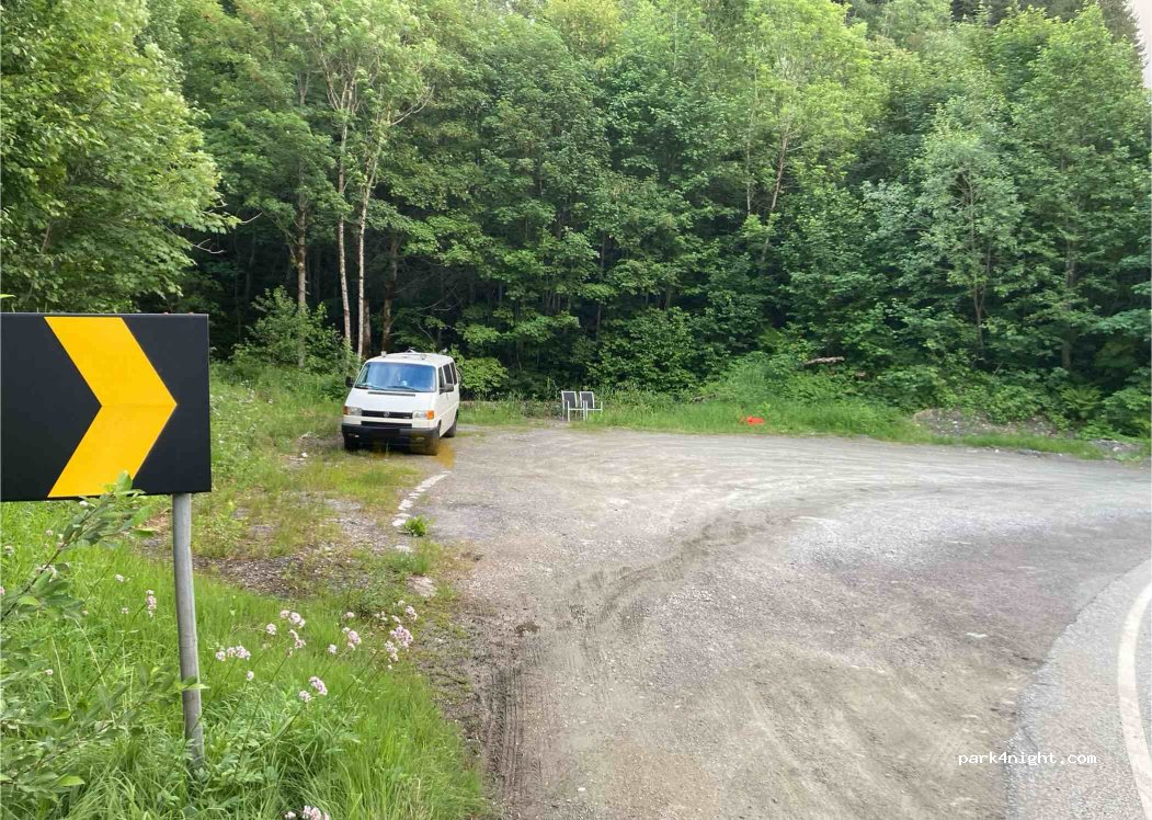 If necessary, a nearly horizontal parking space is available for small vehicles in the back corner of the car park. There is a view of the valley.