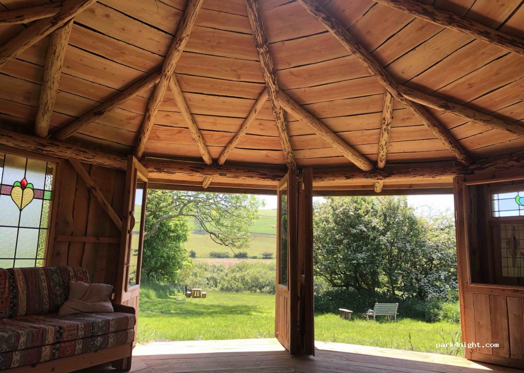 Stayed for one night. The route I took there is a hairpin bend on a hill on a road a couple of miles from the campsite, you then drive through farmland. If you get lucky you may get to sit for 15 minutes watching the cows being herded in for the night! £25 per night a little pricey but in terms of facilities you get what you pay for, the showers and toilets are really quirky and beautifully decorated, nice and hot too. No signal, although there is a ‘phone bench’ signposted which you can walk up to at the top of the campsite which was a nice surprise! Owner was super friendly and welcoming and helped me reverse when I went the wrong way. He even let me fill up my tank with the hose from his house which is right next to where the camper vans park. I didn’t get to use the little round house, but it looks so beautiful.
