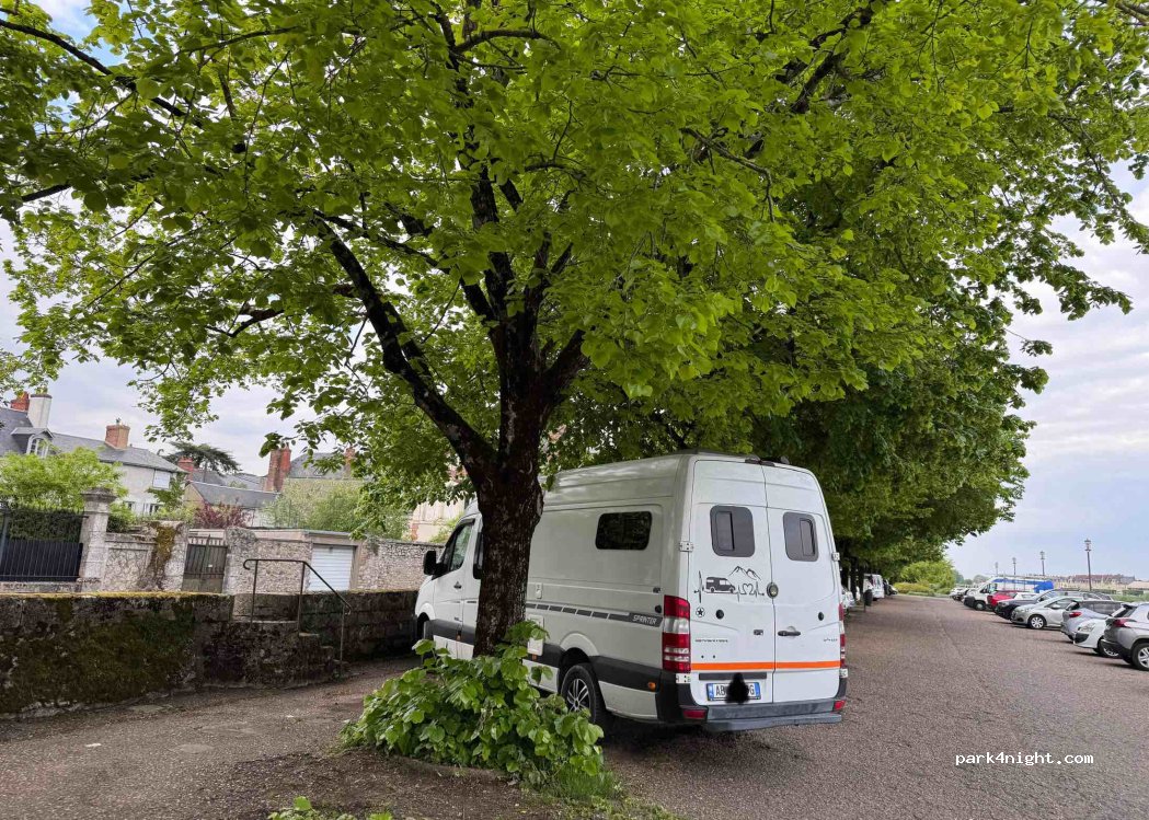 Parking à proximité du château, en bord de Loire. Pas dérangés du tout par la circulation ni les promeneurs. Idéal pour passer une nuit proche du centre historique.