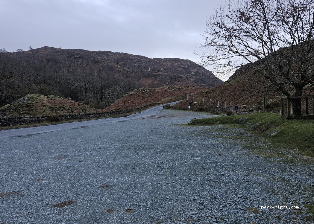 Load of room, stunning location with amazing walks from the car park. Little river to have a picnic by, just amazing really. Quiet overnight, walkers/runners/climbers during the day. Wiggley road to reach it but worth it and there's a few passing places.