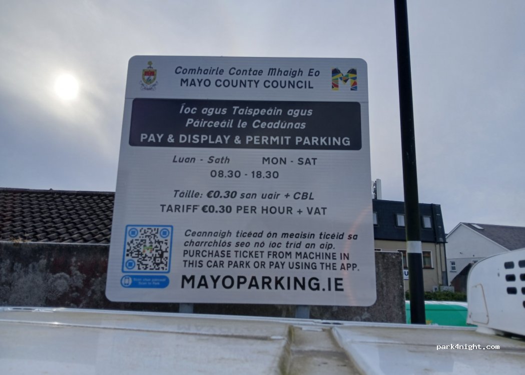 Car park in town. free parking from 18:30 to 8:30 Mon to Sat and all day Sunday. Very cheap rates outside now that. Big car park with plenty of hedgerows to snug up against for some semi-privacy. Flat. Traffic sounds not too bad. Just around the corner from the delicious Korean restaurant Seoul Food.