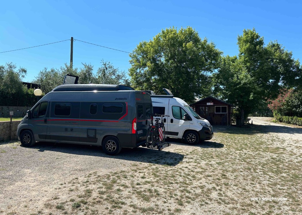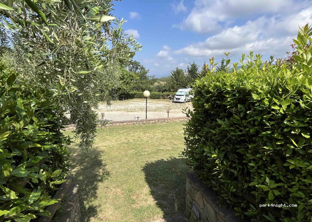 Aire très accueillante, à vous faire oublier que vous êtes sur une aire de camping-car. Famille très gentille, spot sur la Toscane magnifique, très très calme, peu de monde ( 3 camping-car en pleins mois d'août ) attention pour l'accès par le haut, camping-car avec capucine de 6.50m touchant de partout, il faut avoir un bon coup de volant.