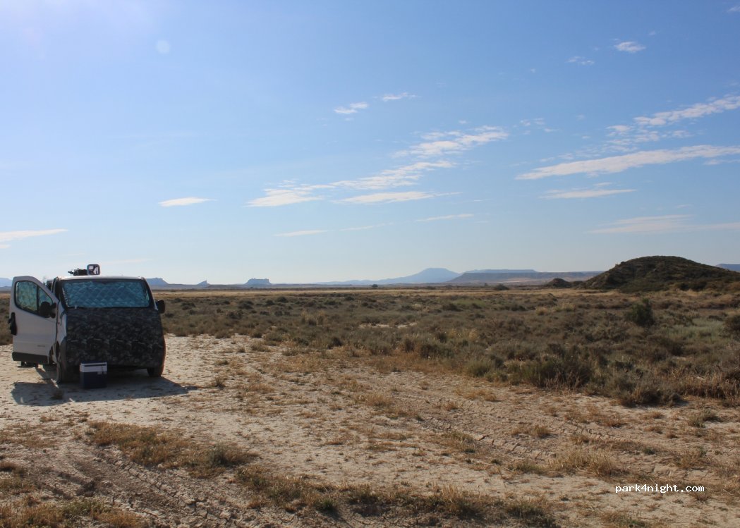 Sehr ebener Platz mitten in der Wüste, atemberaubender Blick auf die Bardenas.