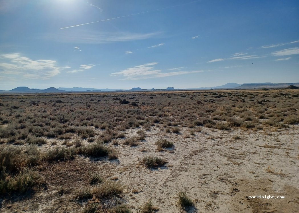 Endroit très plat au milieu du désert, avec une vue imprenable sur les Bardenas.