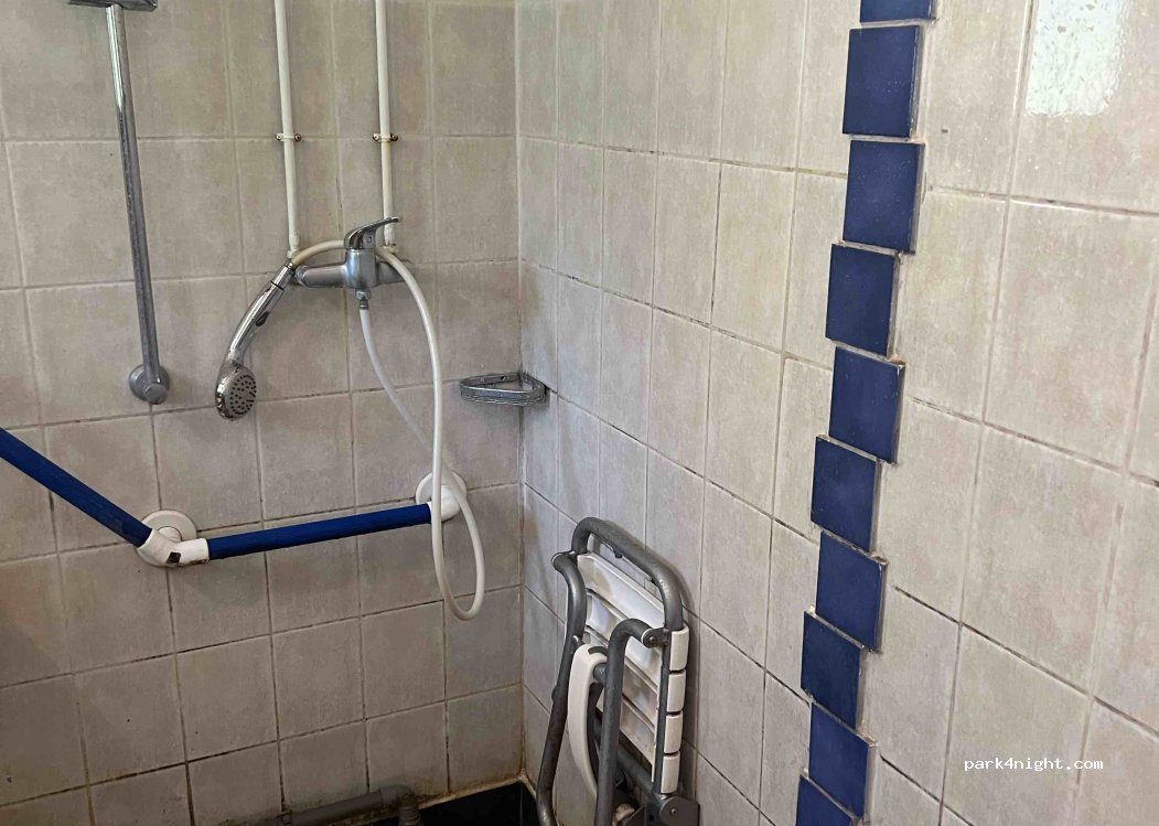 Sanitaires anciens et sales. Pas de paiement en .C.B., pas de chèque, uniquement des espèces. Affiche le logo ACSI, mais n'en tiens pas compte (passage en mai). Tarif élevé. Vidanges des eaux grises et des eaux noires très archaïques.