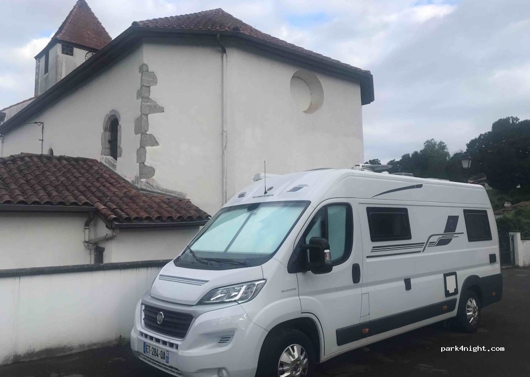 Parking entre l’église et fronton pas de service , près de la route bien pour une nuit . Au départ d’une randonnée