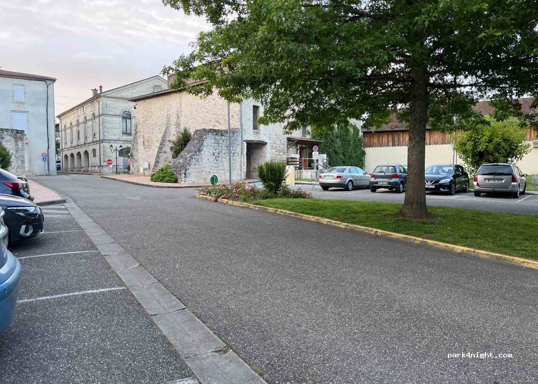 Parking du cinéma bien une dizaine de place gratuit près du centre-ville, pas loin d’un lac, super calme avec promenade au bord de la rivière. Des toilettes publiques sont dispo à 20 mètres.