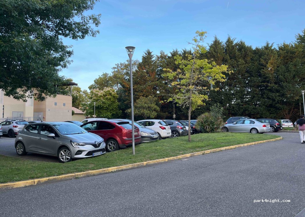 Cinema parking, about ten free spaces near the city center, not far from a lake, super quiet with a walk along the river. Public toilets are available 20 meters away.