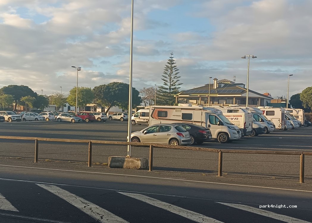 Parking público muy cerca del centro.Hemos pasado una noche aquí. Hay mucho tránsito de coches y personas hasta la madrugada,supongo porque es temporada alta y sábado por la noche. Por 2e el día está bien para visitar punta umbría.