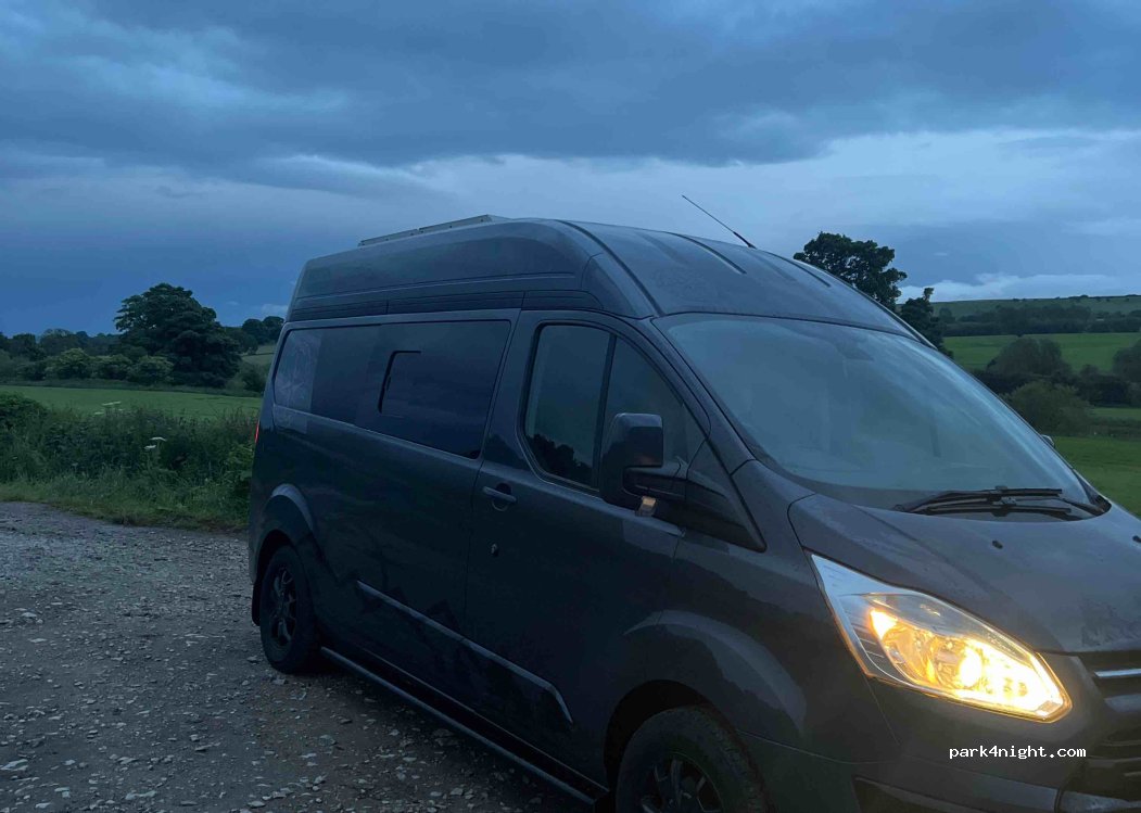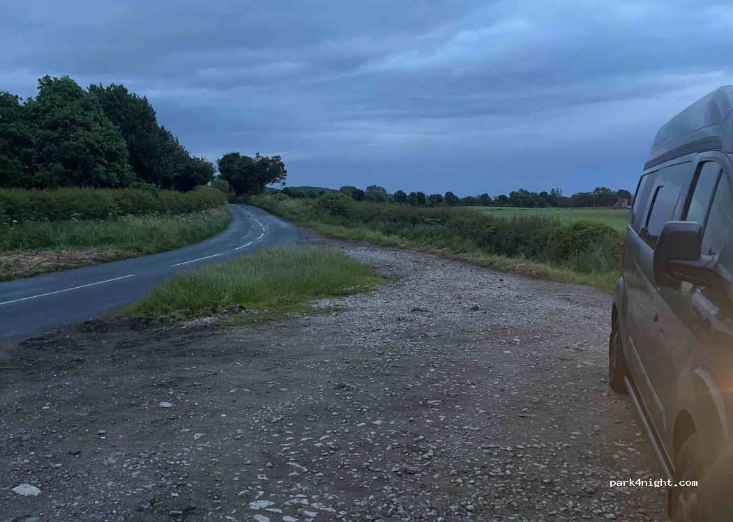 Slightly bumpy semi circular layby, no facilities here but nice and quiet, no bins so please take everything with you ! Me and daughter stayed overnight, very peaceful, just the occasional car after 8:30pm on a Saturday.