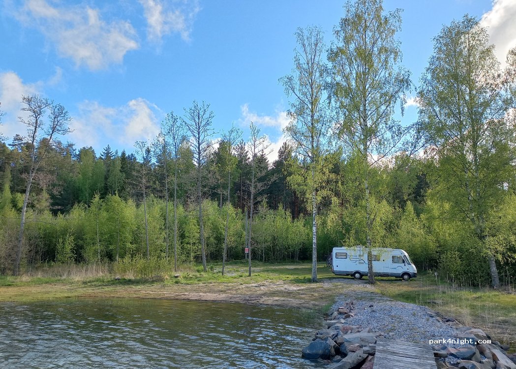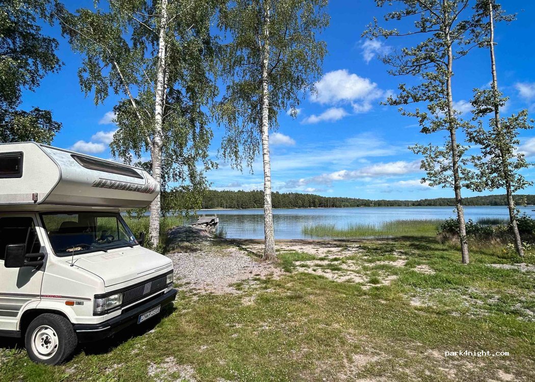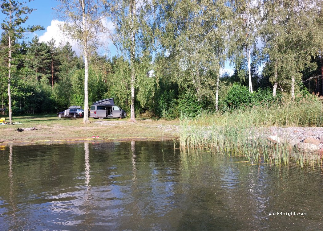 Very quiet parking for 2 campers. directly at the sandy beach. No services! Payment with app. Narrow gravel road.