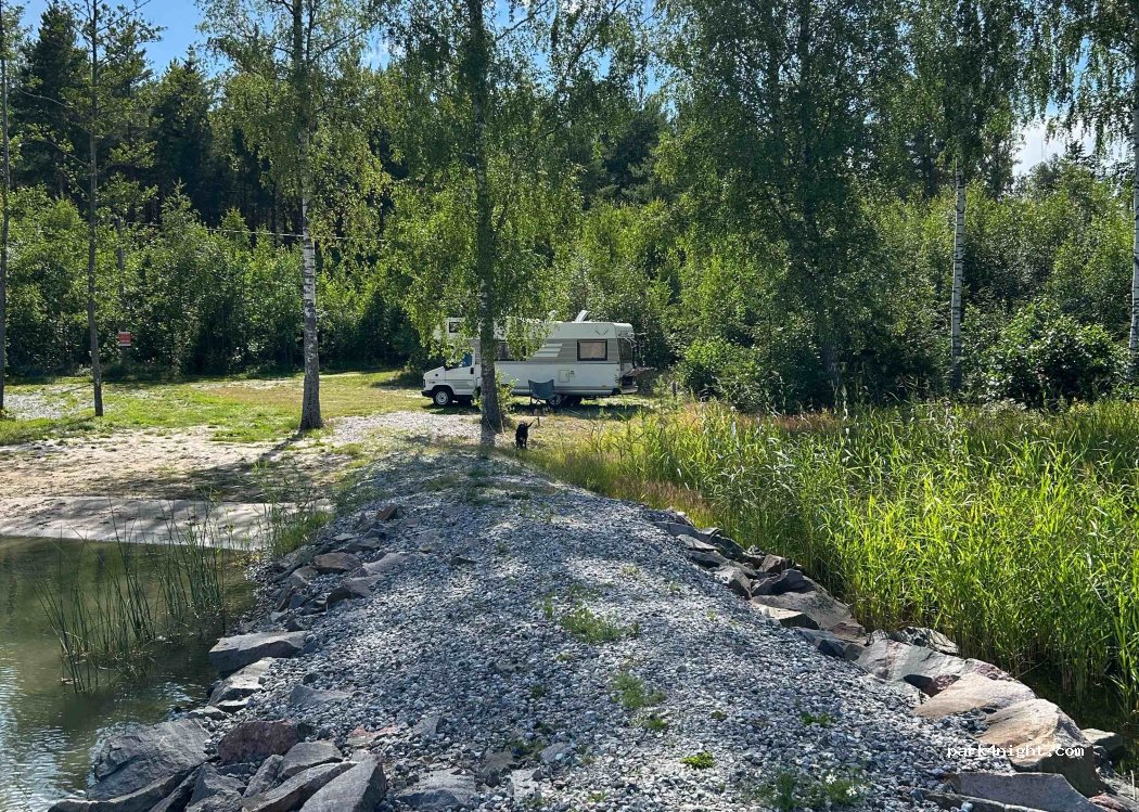 Toller Platz direkt am Wasser für 2 Wohnmobile. Zufahrt problemlos möglich. 15 € sind über die App zu bezahlen. Keinerlei Dienstleistung vorhanden. Frühstück kann man im Café Oak Tree erhalten. Man wird herzlich von Eliisa empfangen.