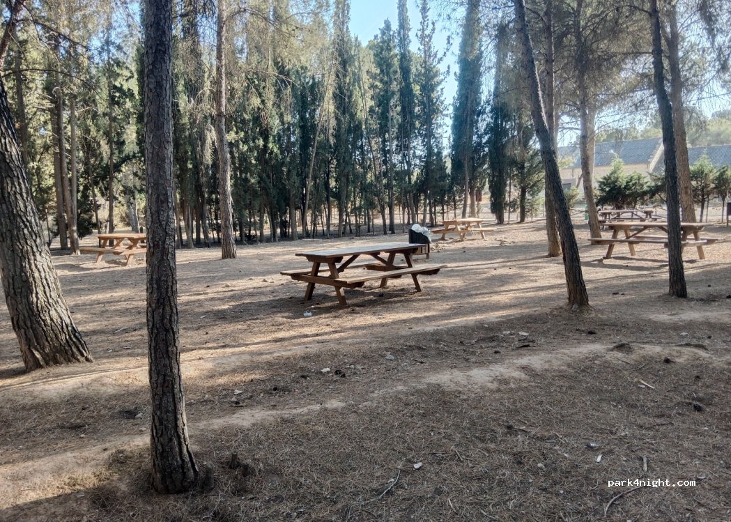 Picnic area not very old there are a dozen benches and table all in good condition the trash cans also the whole site is shaded there is the possibility of parking these vehicles in front of the road and the water is just behind very pleasant.