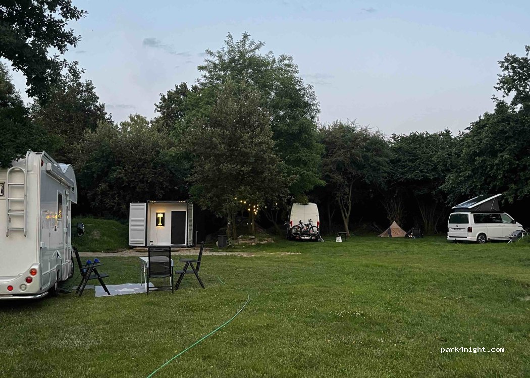 Great Place with very Nice Host. Parking on Grass. New Bathroom with shower and toilet, cleaned every day. Owner will construct outdoor kitchen and sauna next year! Little swimming pool, very nice for kids and to fresh in summer. From the spot you can drive by bike via the forest to the city center. Ideal for dogs.