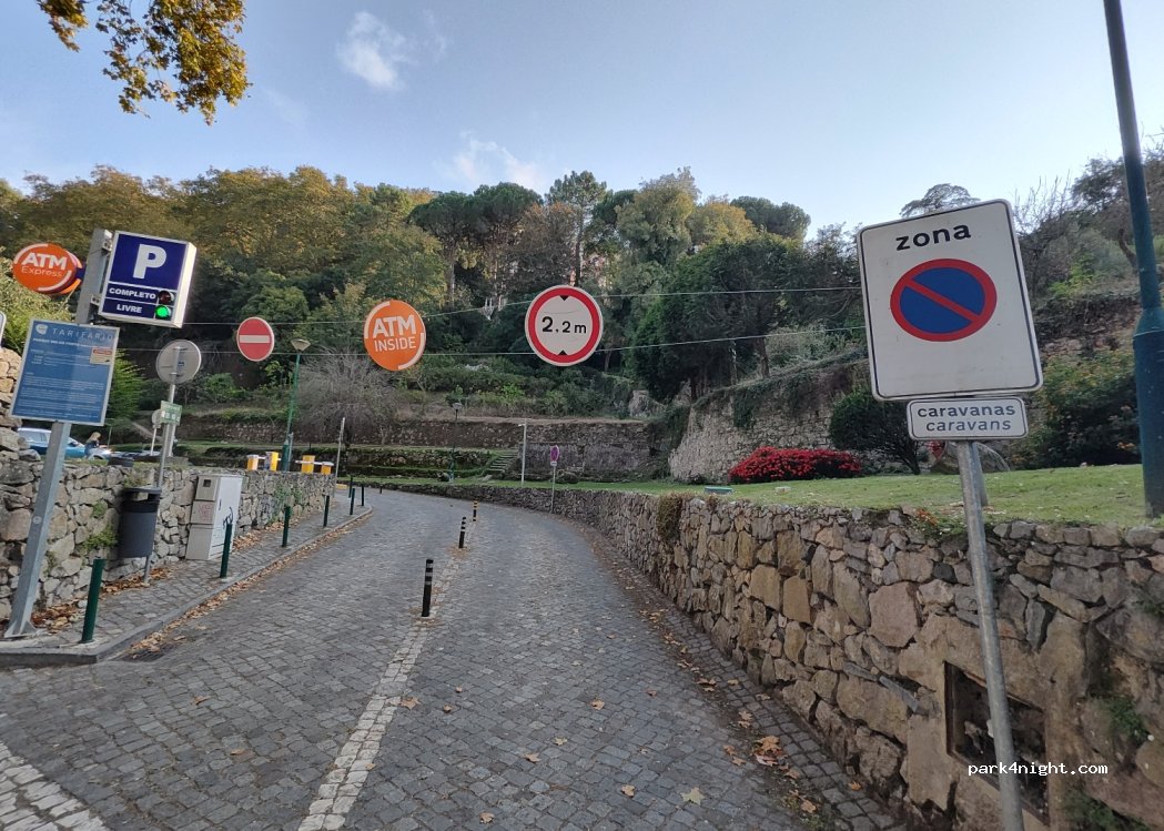 We parked from 10am and left the next morning, paid €25. Perfect place to park, it was about 5 minutes to walk to the main town square and to the national palace or Sintra. We slept there overnight with no problems, some noise from people in the area but not too bad. No issues with driving our camper van around.