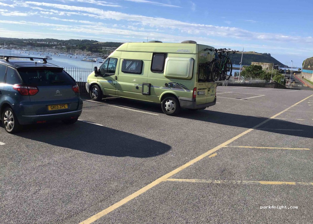 There is one space in this car park that allowed us to stay in our 7.9m Moho. Super location, little noisy till 12.30/1am ish but peaceful in morning and super view overlooking harbour. This place is perfect for anything less than 5.5m but as I said, 1 space that allows a longer vehicle