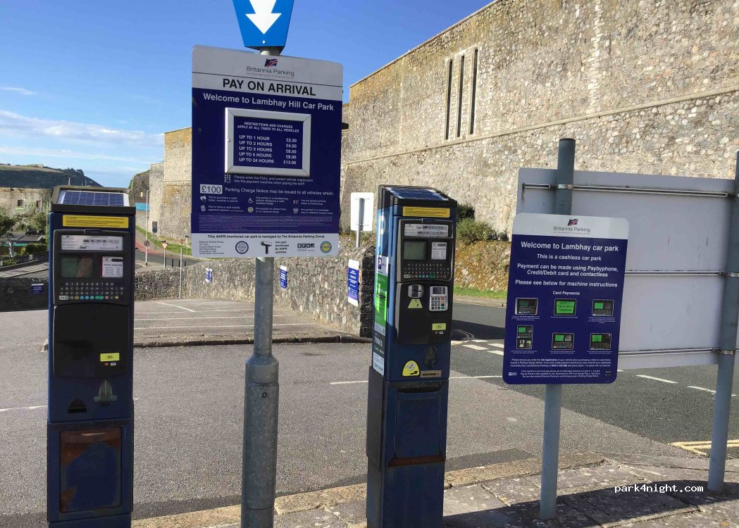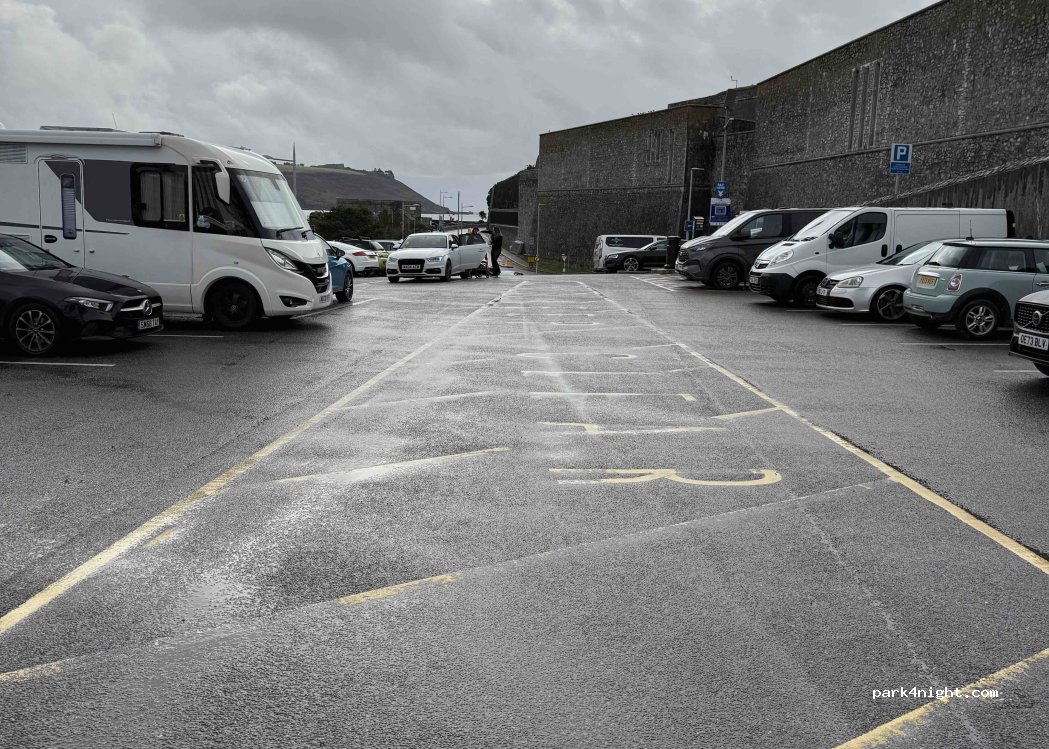 It's a car park very close to Sutton Harbour and The Barbican. A 10 mins walk to the city centre. Most of the car park is flat. Busy in the day but pretty much empty later in the evening and over night. Very quiet and had an undisturbed night. Charge for overnight via machine or app. Stayed on a Sunday night in Nov.