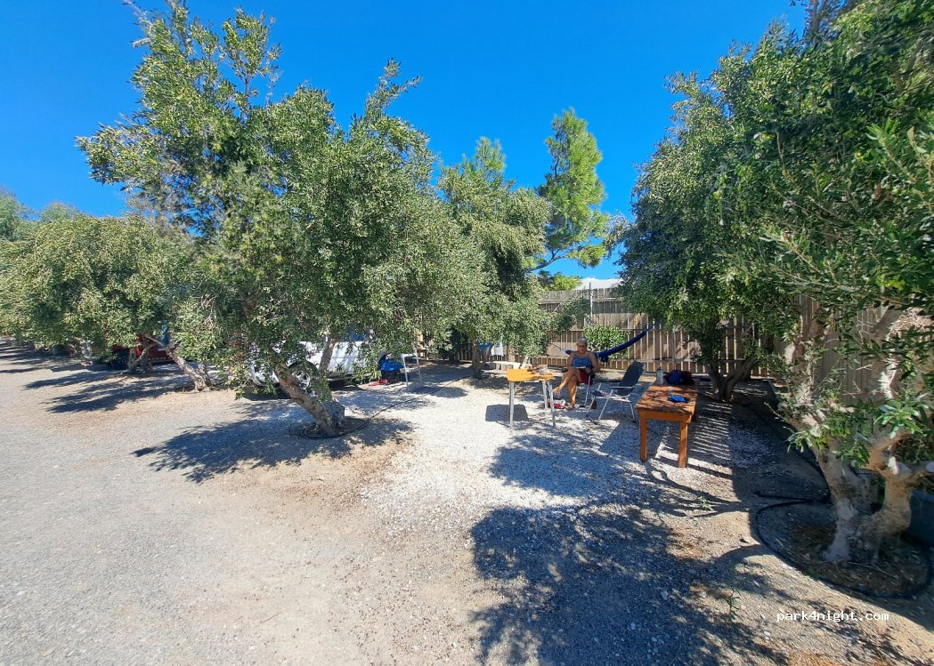 Camping très sympathique, joli, ombragé et très propre. Implanté au milieu d’une ancienne oliveraie agrémentée d’eucalyptus. Accès à la plage mais la piscine qui est gratuite est payante si on veut s’asseoir !! Comme il y a beaucoup de vent, aucun moustique. Accueil chaleureux