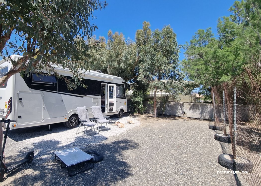 Pire nuit, énormément de bruit lié au restaurant situé à côté, passages nombreux et fréquents de véhicules roulants à vive allure, camions bruyants. Du bruit non stop. Pas de vent donc beaucoup de moustiques, votre nuit sera un cauchemar. Pas de possibilité de se baigner à la mer et piscine nécessitant une conso transat. Juste bon pour recharger l'électricité et vider sa caissette d'eau noire.