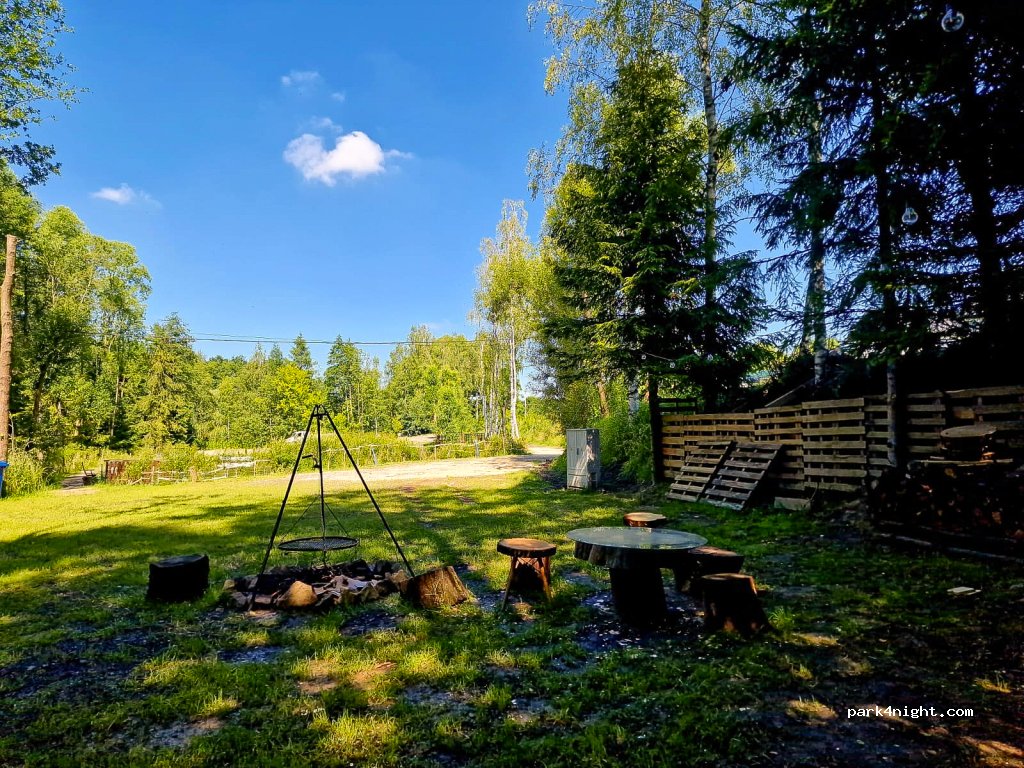 Propriétaire très accueillant et sympathique. Endroit très calme et agréable entouré de nature et un étang. Espace social avec cuisine, lave-linge, micro-ondes,frigo, douches et wc. Jeux pour enfants. Animaux acceptés. 60 zloty sans électricité. Nous avons passé une nuit avant d’aller visiter les mines de sel.