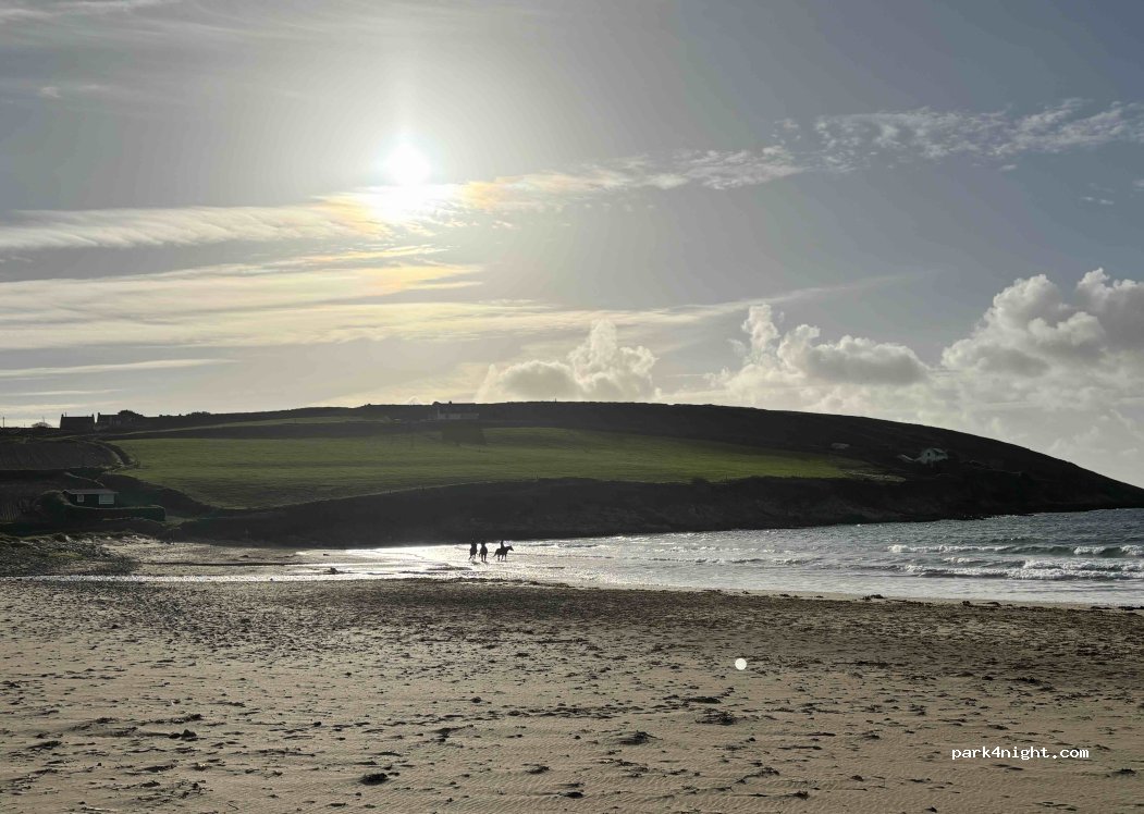 No life guards so no restrictions on dogs!!! Huge beach. Good pub on the headland. Young teenagers came down from the caravan site. A little noisy but no real problem. A very pleasant nights sleep.