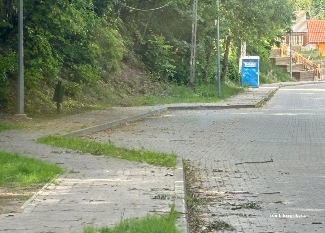 Free parking for 6-8 vans. It’s a quiet place. There’s a shadow from the trees all day long. Also there’s an open toilet.