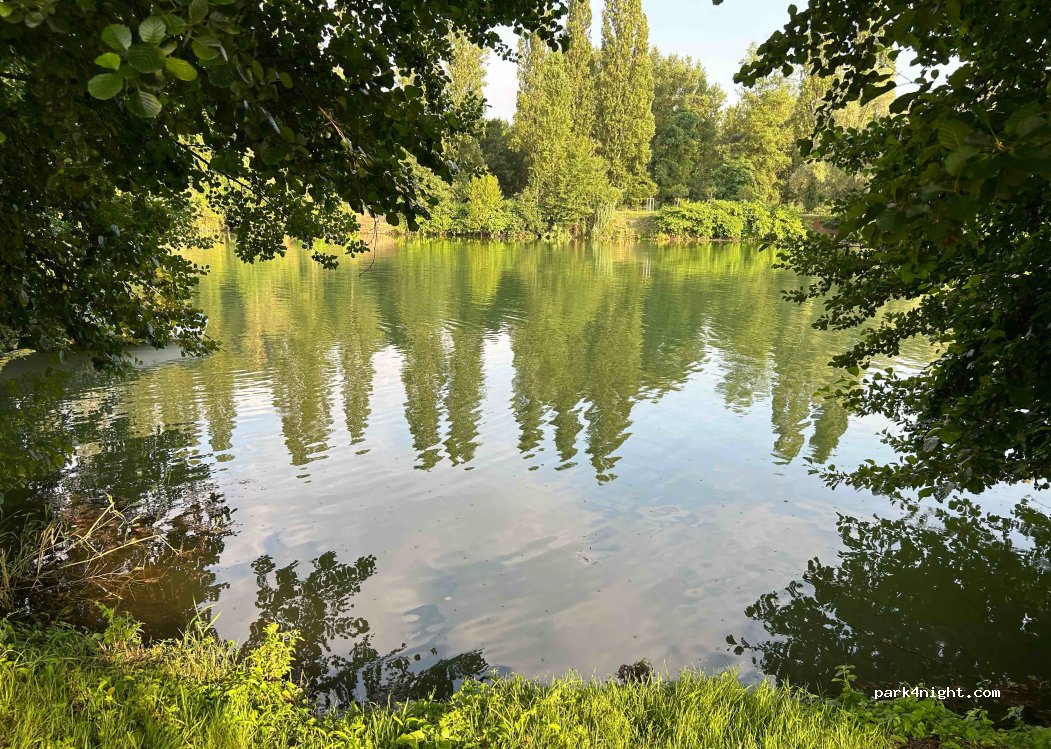Prachtig aangelegd, zeer rustig. We stonden alleen. Volg zeker googlemaps NIET. We zijn jammer genoeg langs het veel te smalle pad met uitstekende takken gereden. Rijd tot het bord zoals op de foto, aan het voetbalveld, daar loopt een brede kiezelweg tot op de parking. Wandelmogelijkheden rond het meer, suppen, pedalo, cano, vissen...mogelijk.