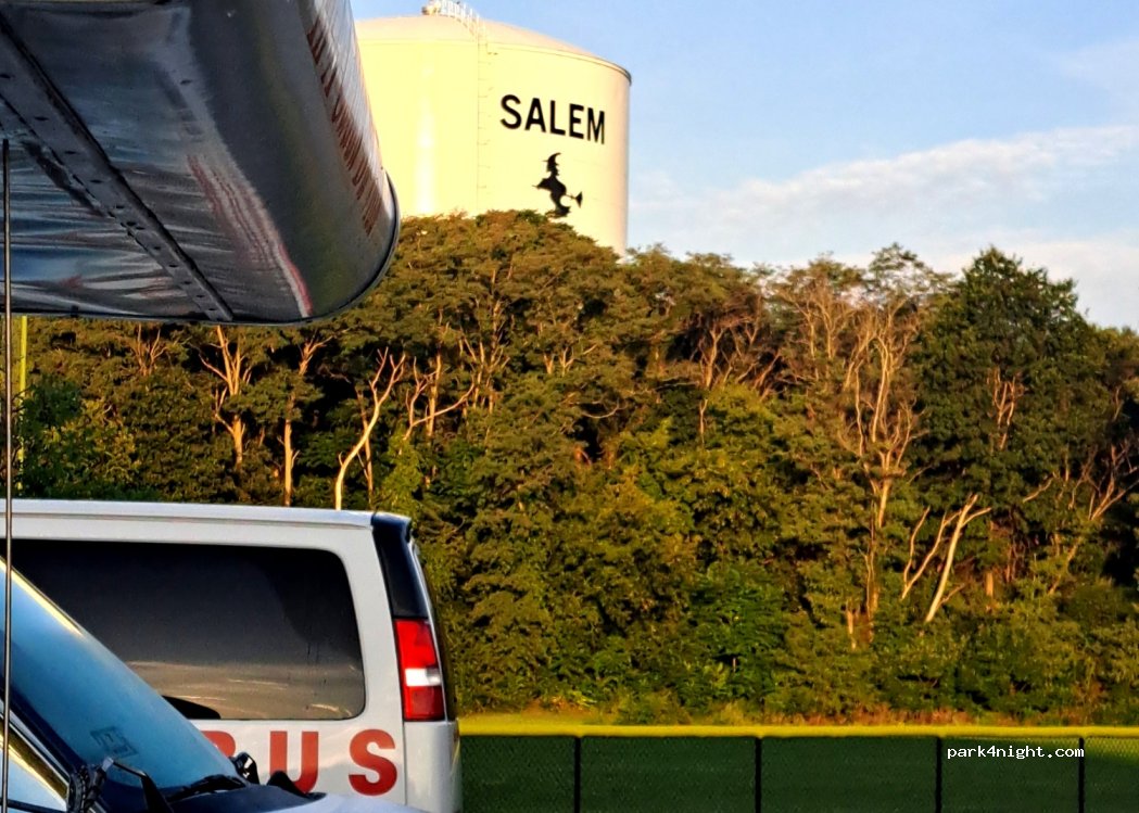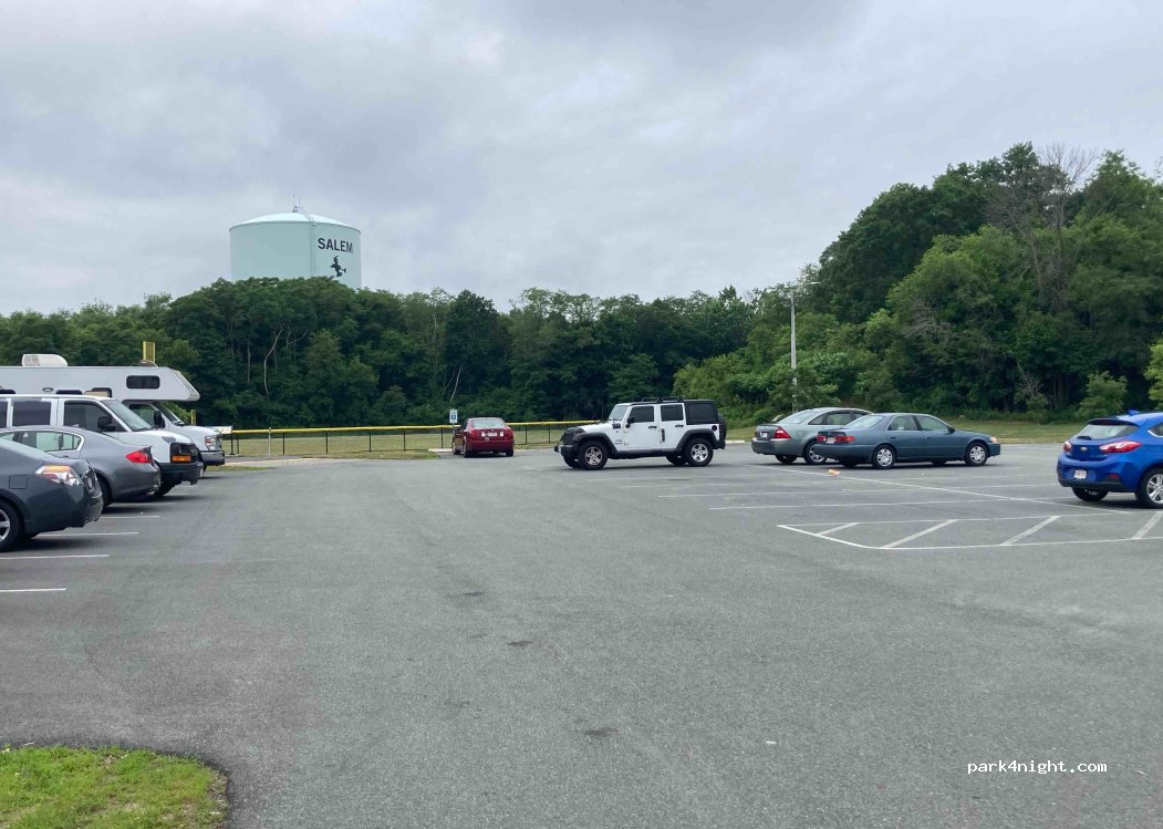Parking lot in Salem, Mansell Pkwy at the corner of Witch Hill Rd. No prohibition signs, next to a playground and Ryan Brennan Memorial Skate Park. No water and sewage. Very quiet!