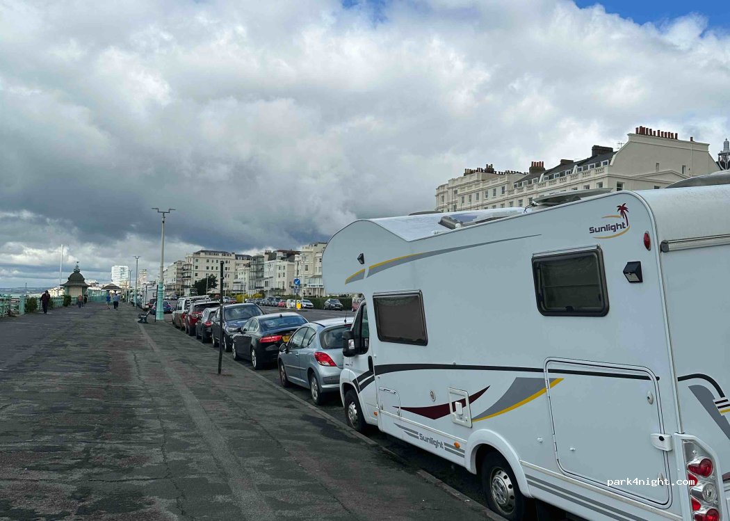 Ideal paid parking until 8:00 p.m. for visiting the city and Brighton Pier. If you want to spend the night, it is better to park on the lower road, free and quieter from 6:00 p.m. This is perfect for motorhomes over 6.5 m as there is no herringbone space for longer ones in the lower lane.