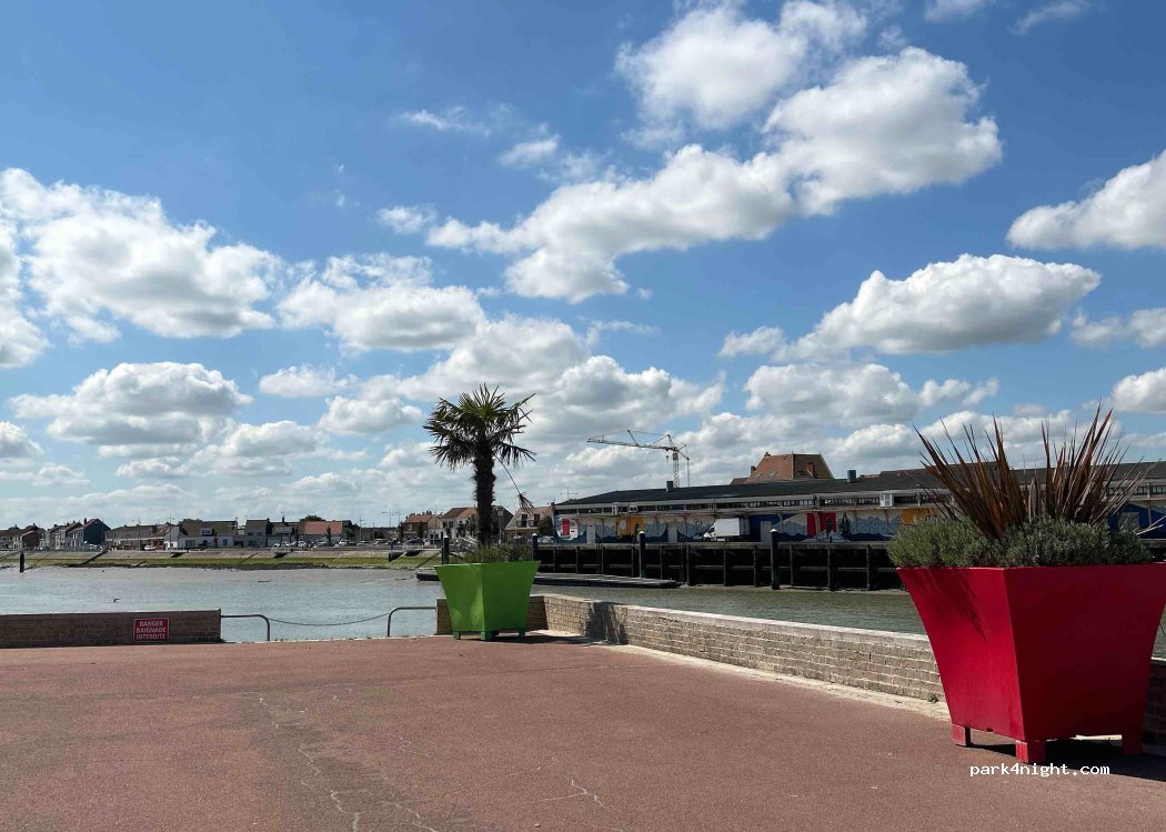 Petit parking avec jolie vue. Accès au phare avec visite possible. Accès à la digue et à la plage, pas d'interdiction ni de restriction de hauteur. Toilettes publiques à proximité, point d'eau et WC. Petit parking non adapté aux gros véhicules