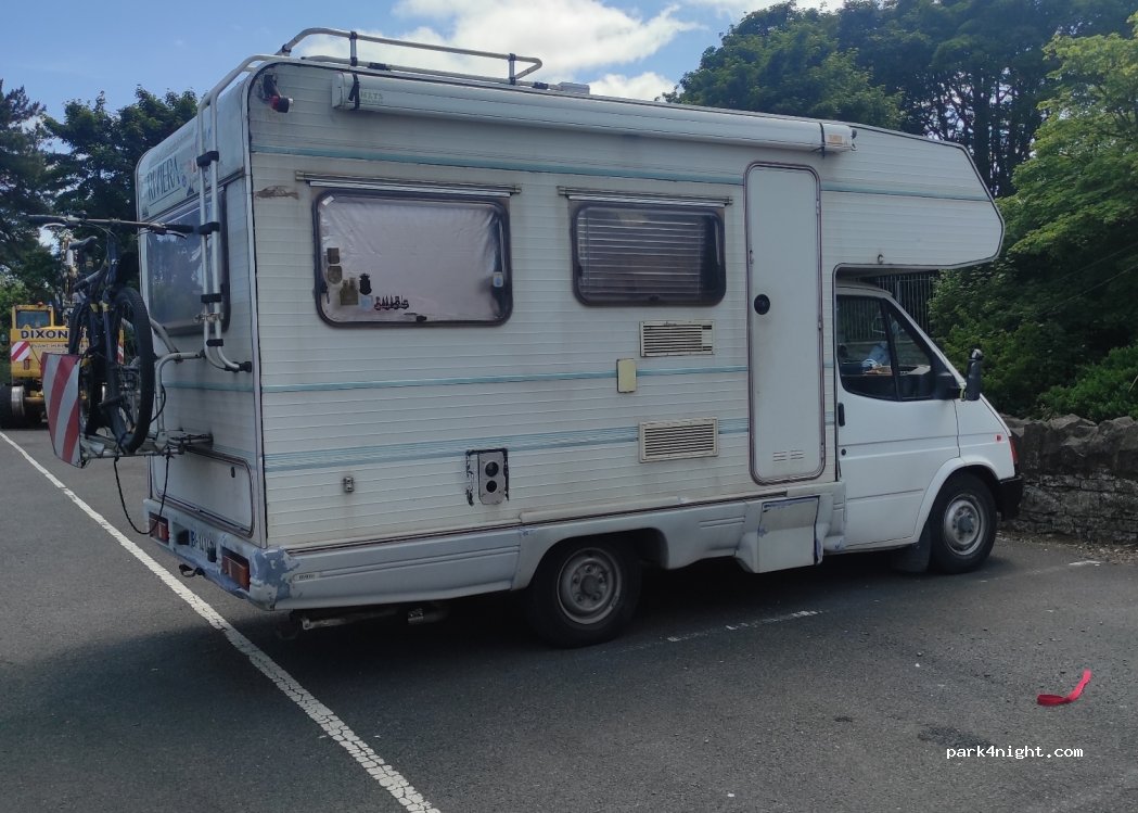 Car park very busy during the day. Spaces only really suitable for cars and camper vans.