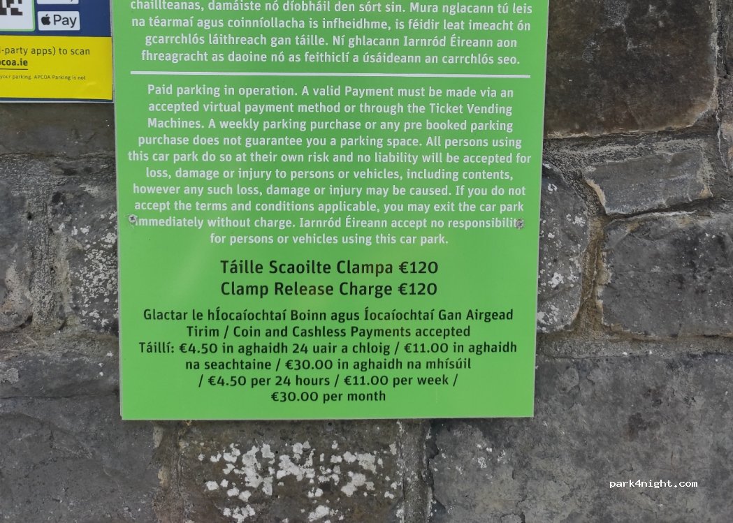 Parking de la gare de Drogheda. De nombreuses places, de grandes places au mur.