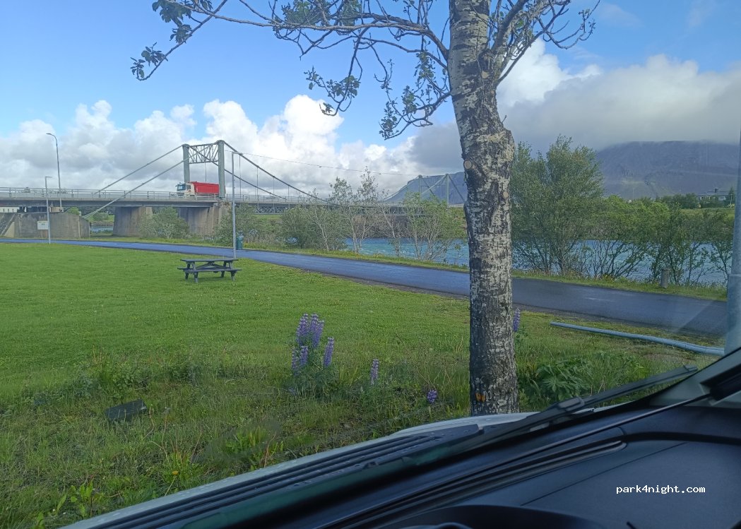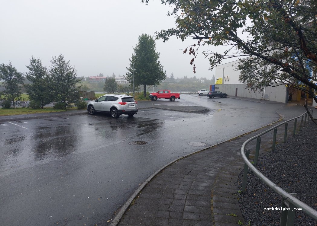 No overnight stay allowed. There is a nice Campground in Selfoss