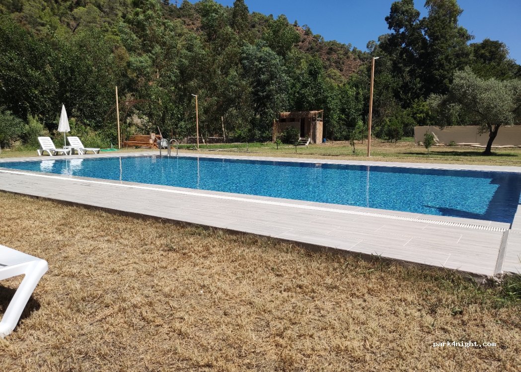 Magnifique camping récent, encore en cours de construction. Piscine très propre et chaude. Joliment décoré. un endroit très charmant, calme la nuit. 750 tl pour une nuit avec un van et 3 enfants. possibilité de faire la lessive pour 50 tl, très bonne machine à laver. Propriétaire très accueillant. Un restaurant typique juste à côté où nous avons très bien mangé. A l'ombre matin et soir.