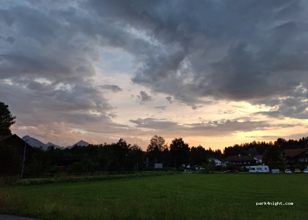 Perfekte Parkplätze direkt an der Straße in Richtung Altstadt Füssen. Die Parkbuchten sind breit und lang genug auch für größere Wohnmobile.