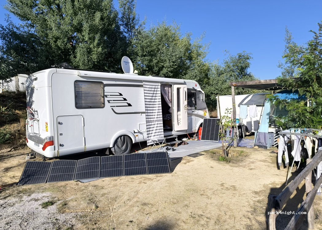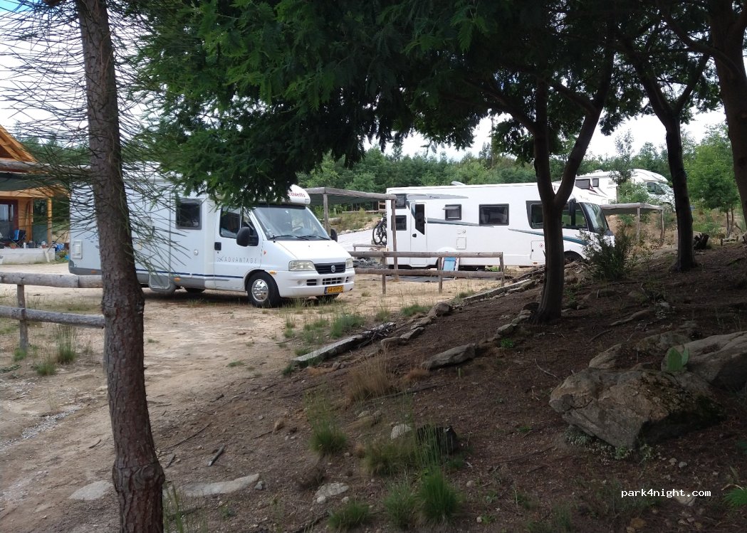 Een kleine camperplaats/camping (cash-only), 16 plaatsen, waarvan 3 met electra (3A, off-grid!), in de natuur met toilet, douche op electrische boiler met zonnepanelen, waterinlaat, sanitaire stortplaats, gratis WiFi.