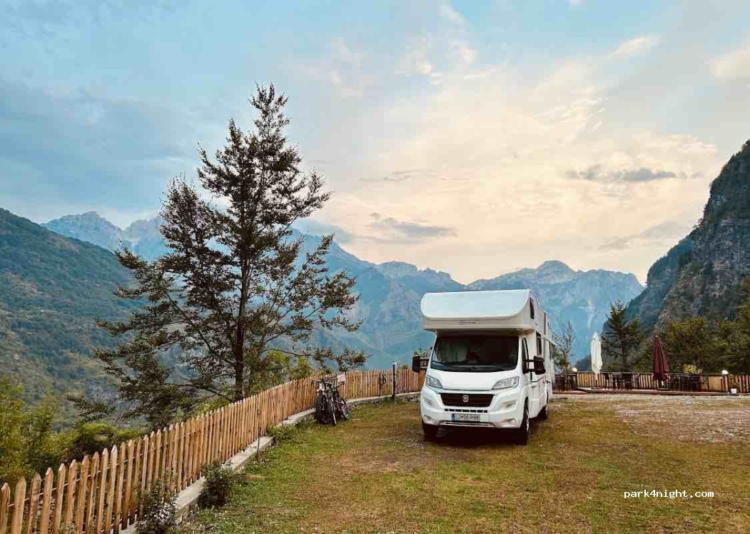 Einer der schönsten CP in Albanien. Mitten am Berg gelegen mit traumhafter Aussicht von der Terrasse und den Stellplätzen. Der Empfang war sehr freundlich :) wundervolle Lage Nähe Theth. Die Toiletten und Duschen sind recht neu und sehr sauber. Die Bar lädt Abends zum Verweilen ein und es gibt sogar Frühstück für 6€. Nebendran ist ein super tolles Restaurant, preislich top und sehr schmackhaft. Pro Nacht 10€/1 Pers. sehr fair! Komme sicherlich wieder vorbei kommendes Jahr ;))