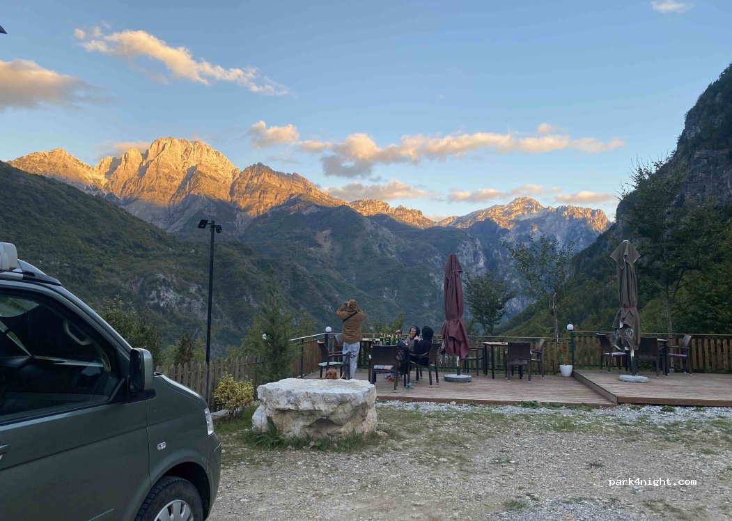 Der Platz ist gerade neu eröffnet. Sehr nette Besitzer. Gute sanitäre Anlagen. Schönes Panorama von den Stellplätzen aus. Theth ist fußläufig erreichbar. Kalte Getränke waren verfügbar, das Restaurant hatte noch nicht geöffnet. Wir fanden es mit einem kleinen Zelt sehr gemütlich, der Platz eignet sich aber auch für größere Mobile.