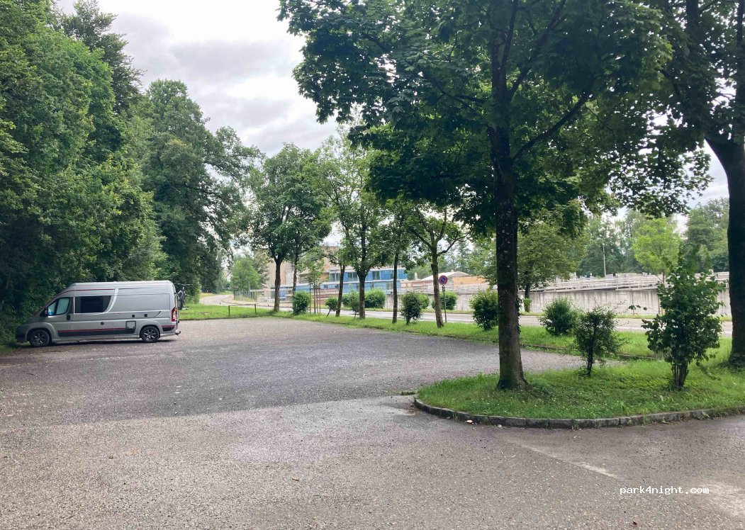 The parking lot is nice, the terrain is slightly sloping, the trees provide some shade and the Greifensee is only a 2-minute walk away, where there is also a public toilet. You can hear the sewage treatment plant and cars on the main road, but at night the traffic is limited. Maximum parking time is 15 hours.
