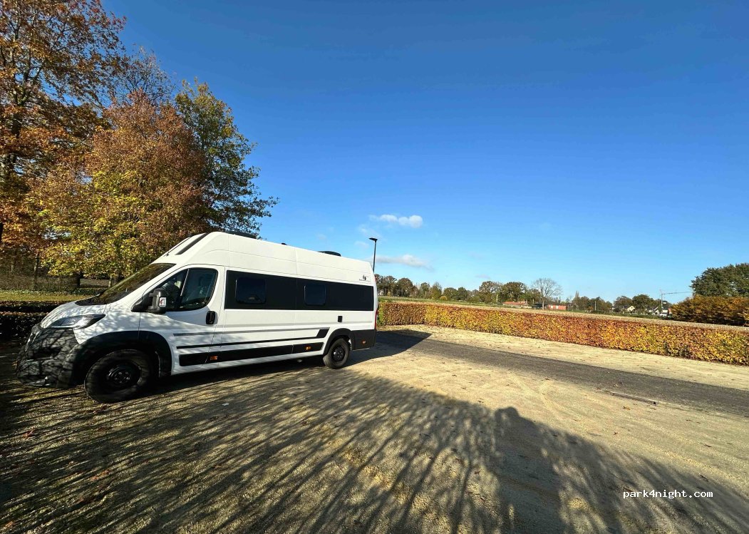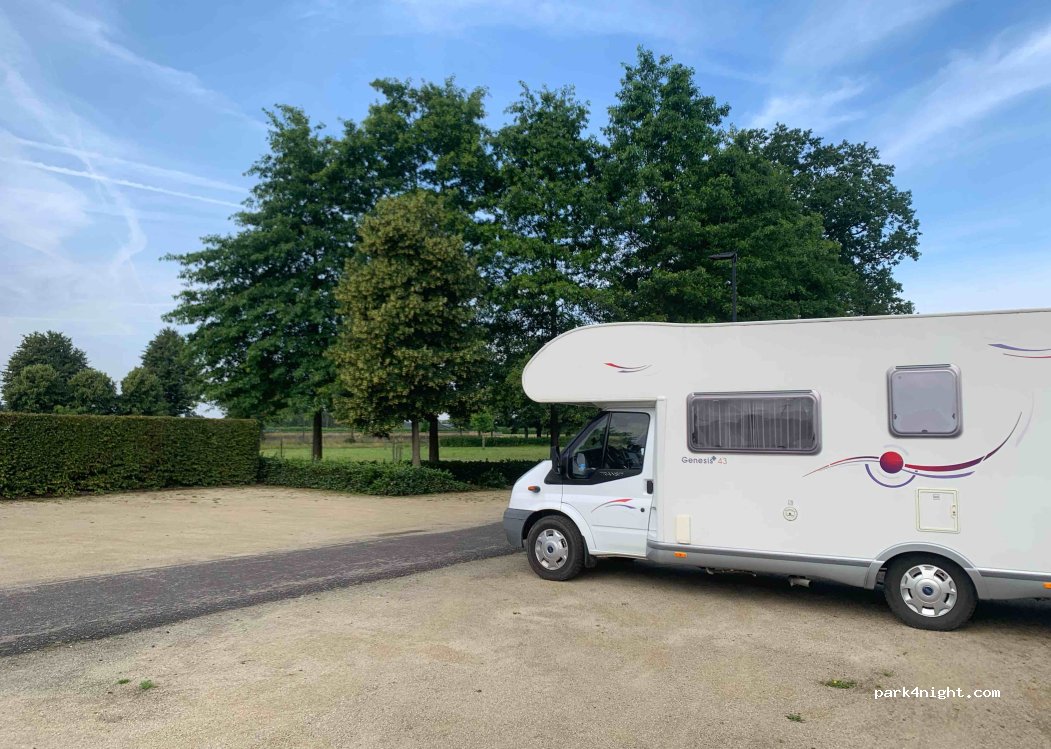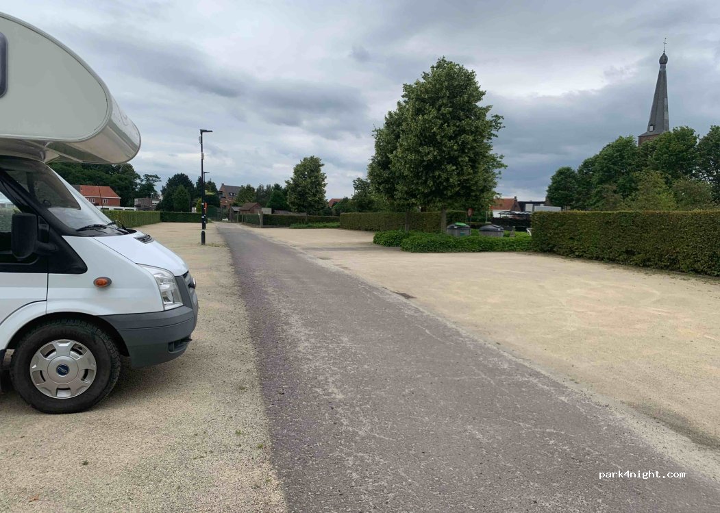 Quiet place next to a cemetery. With a wide view behind the parking lot. You reach the village of Poppel via a small path. There you will find a brasserie, bakery, night shop, Carrefour Express newsagent