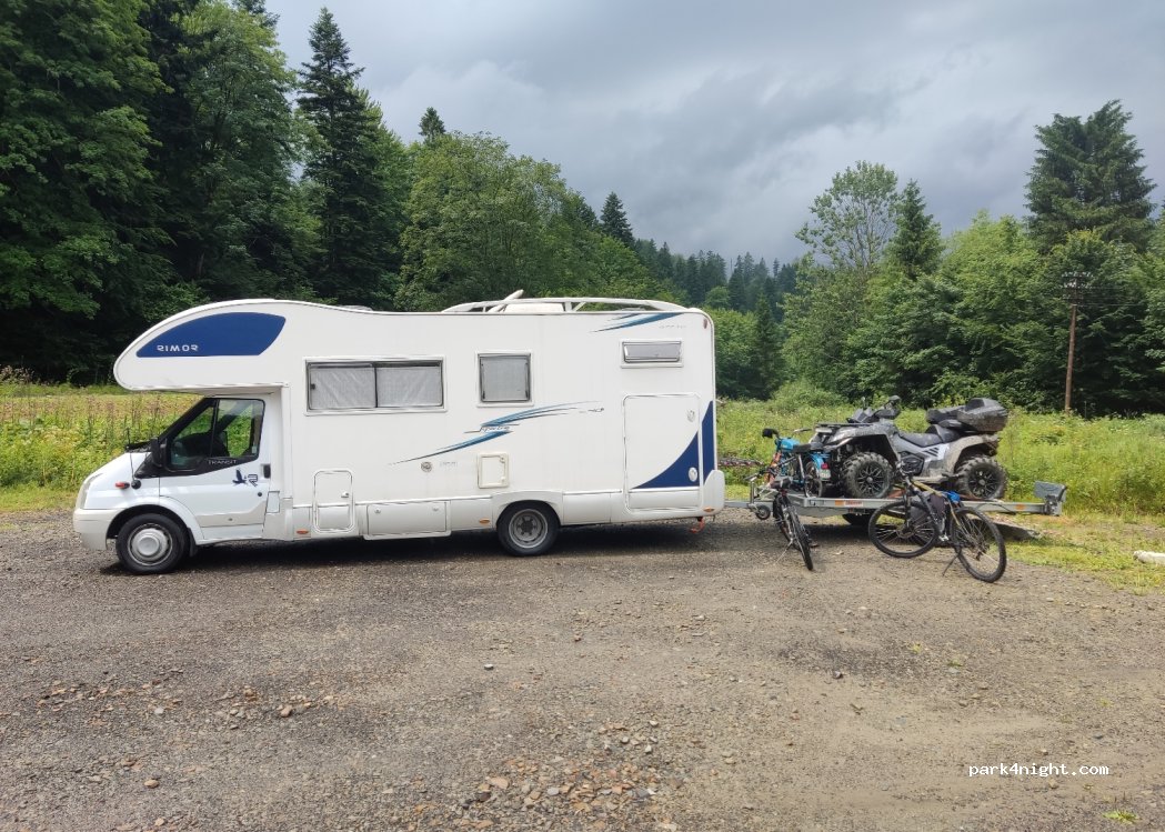 Duży darmowy parking, blisko do kolejki wąskotorowej, do Cisnej, oraz do szlaków górskich. W nocy spokój.
