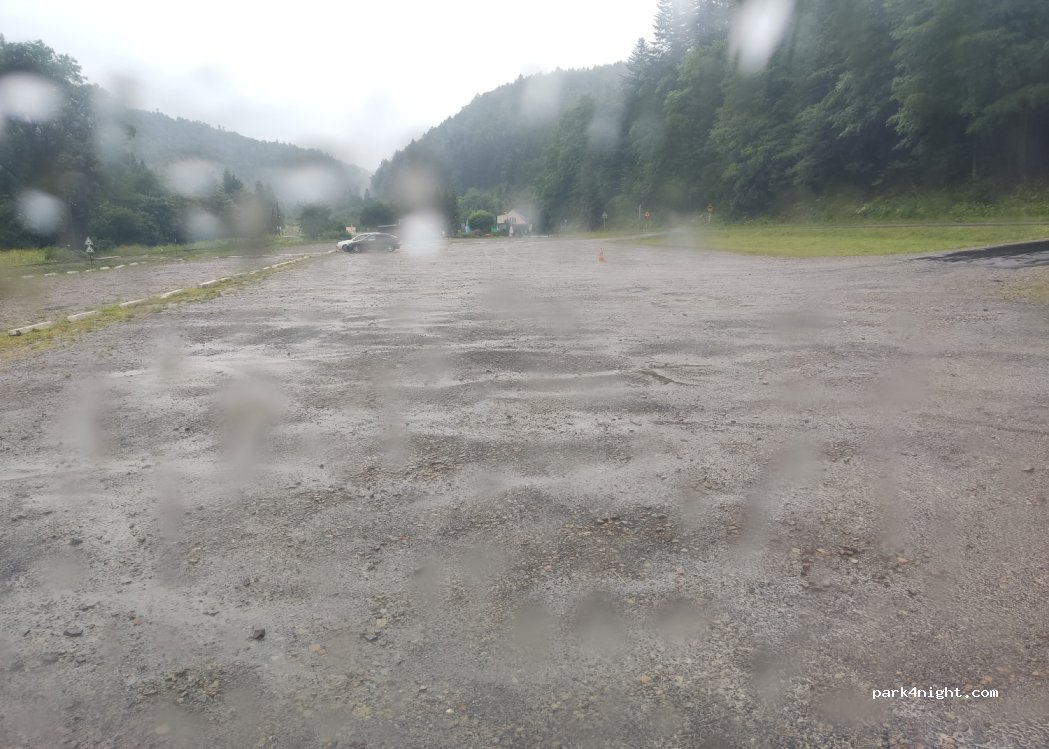 Grand parking public sur la route principale. A proximité de la gare principale du chemin de fer à voie étroite de Bieszczady. Nous avons passé la nuit ici avec un grand décor. Sans aucune aventure. Aucune commodité supplémentaire.