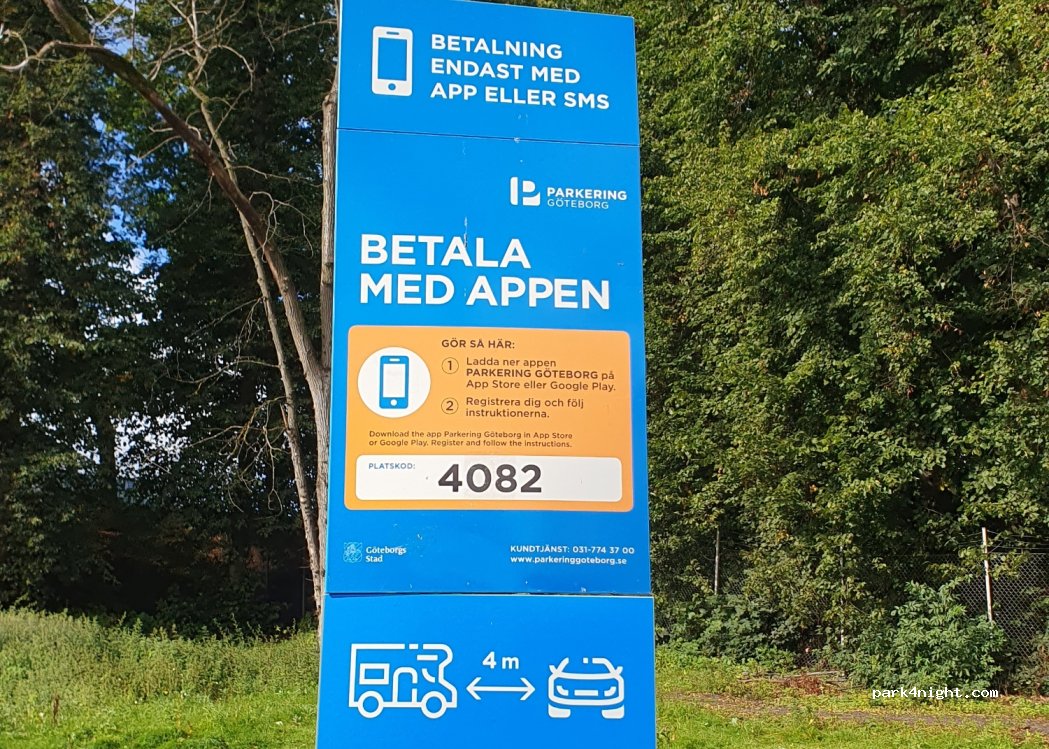 Riesiger Parkplatz, auf dem auch größere Fahrzeuge / WoMos explizit erlaubt sind. Der Platz ist allerdings nicht einfach zu finden, da man zunächst über den normalen Parlplatz und am kleinen Stadion vorbeifahren muss. Nervig ist, dass man extra eine App der Stadt Göteborg benötigt statt der herkömmlichen ParkApps.