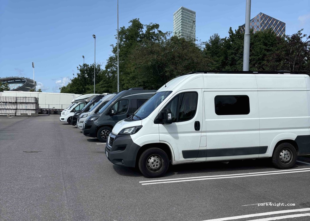 Parking directement au stade. Application obligatoire pour payer. D'accord pour une nuit si vous venez du ferry. Au moment où nous étions ici, la nuit se terminait à 7 heures du matin car un événement sportif avait eu lieu.