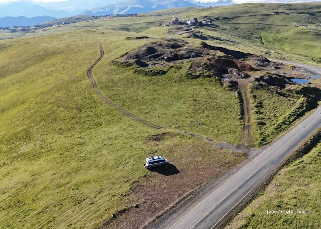 Flat area not far from the Sultan Murat Mosque with a breathtaking panoramic view. During the day there is traffic on the adjacent road, but at night it is very quiet. Many possible parking spaces in the area (mostly 4x4). The mosque is a 5-minute walk away.