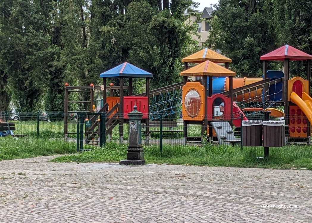 Water only accessible by foot or maybe with a very long cable. Nice park though!