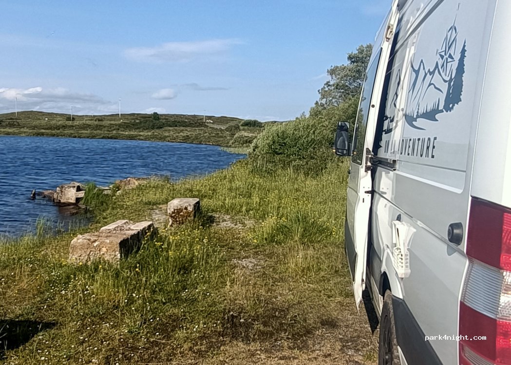 petit coin à l'écart de la route très sympa avec le lac à côté, il n'y a rien mais quand on est autonome c'est très bien ! respecter le lieu car il y a des déchets déjà... et pas de poubelles comme souvent en Irlande.