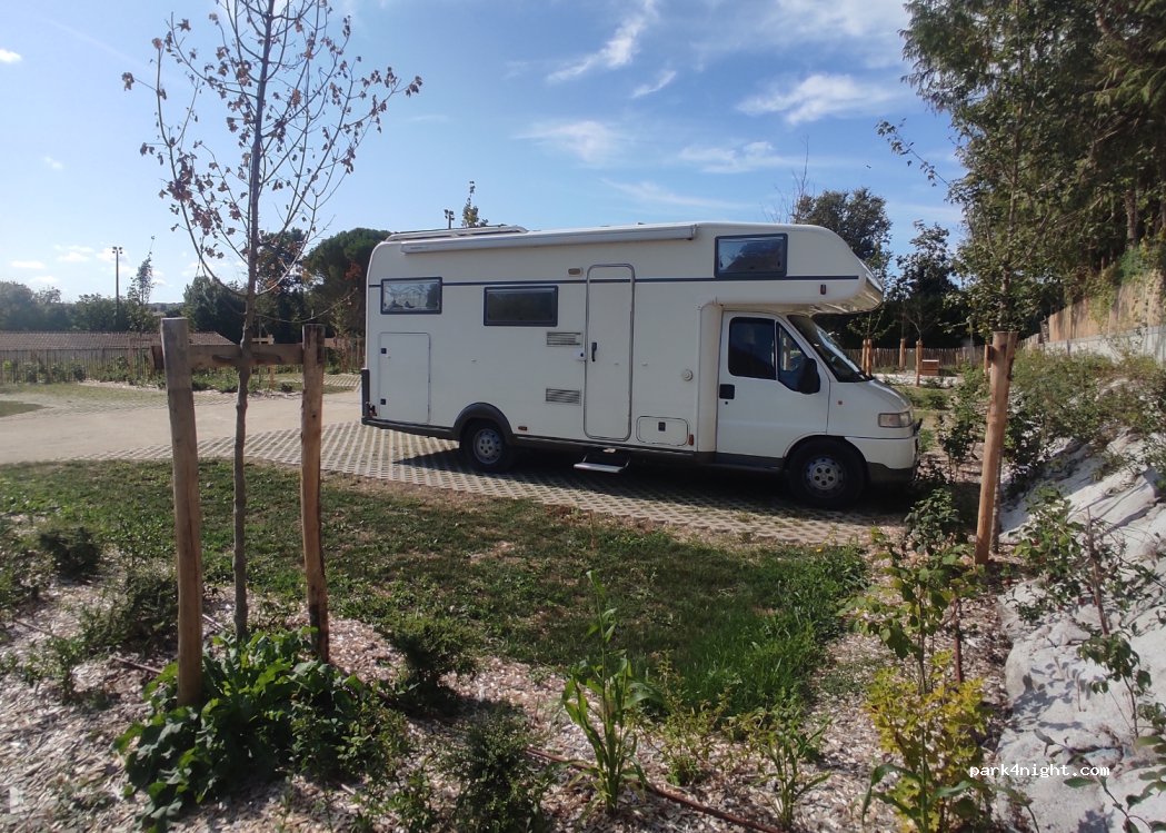 Jolie petite aire bien délimitée et aménagée avec possibilité de visiter la ville à pied.cependant, il est déplorable que l'on ne puisse pas s'approvisionner en eau potable ( la municipalité veut elle restreindre l'eau dans la commune ?)