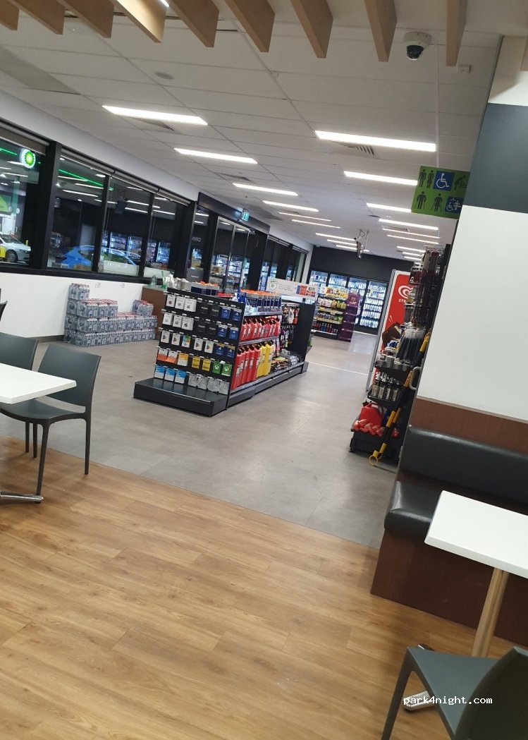Gasolinera con duchas, aseos y autoservicio gratuitos; abierto 24 horas al día, 7 días a la semana.