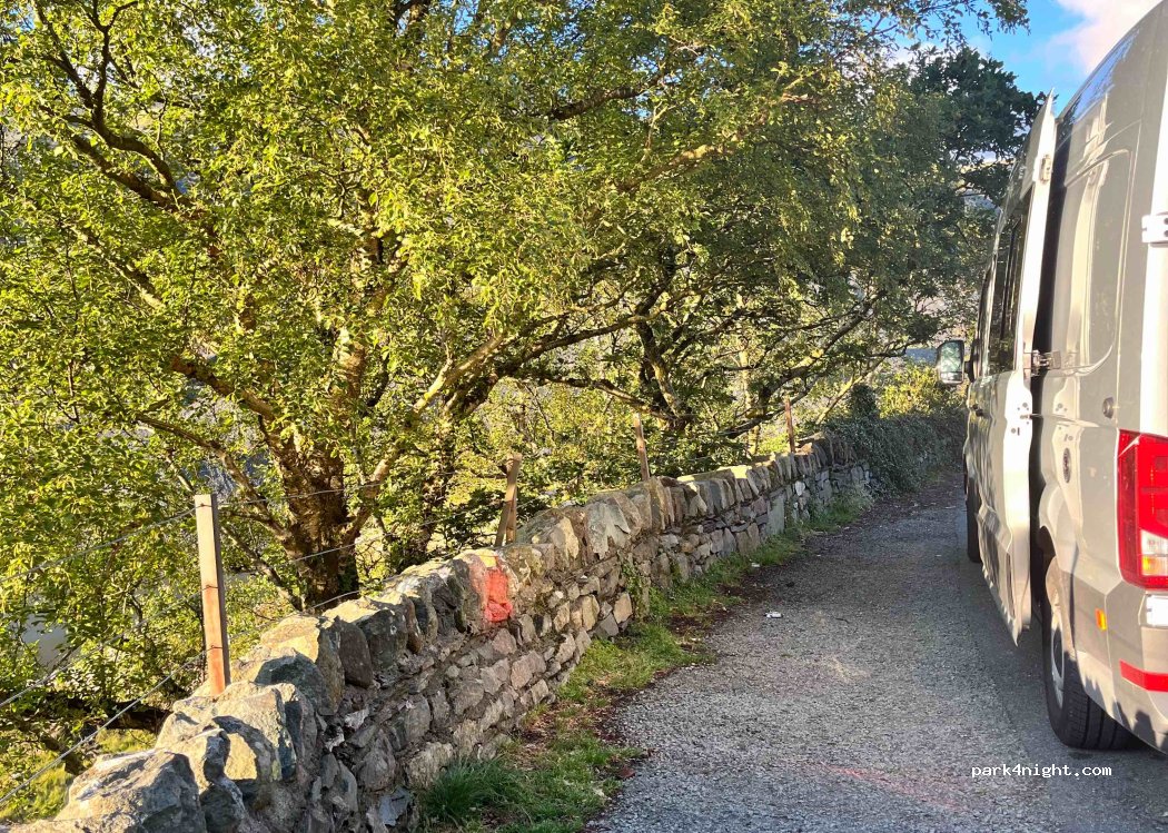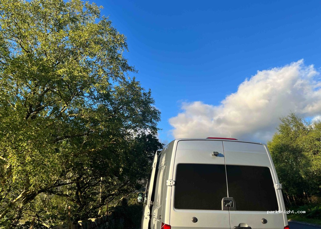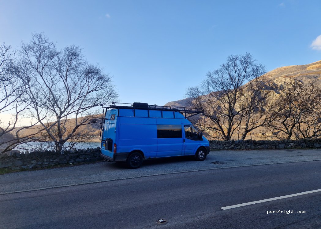 Rest spot with great view on the side of the road. Some traffic noise but quiet overnight. No services so van must be self contained.